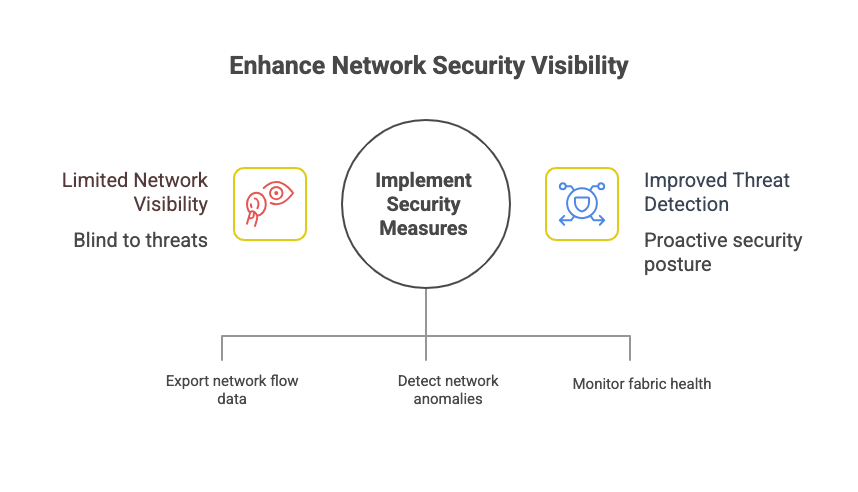 - Telemetry and Flow Monitoring: Export NetFlow, IPFIX, or sFlow from fabric devices for visibility into east‑west traffic.